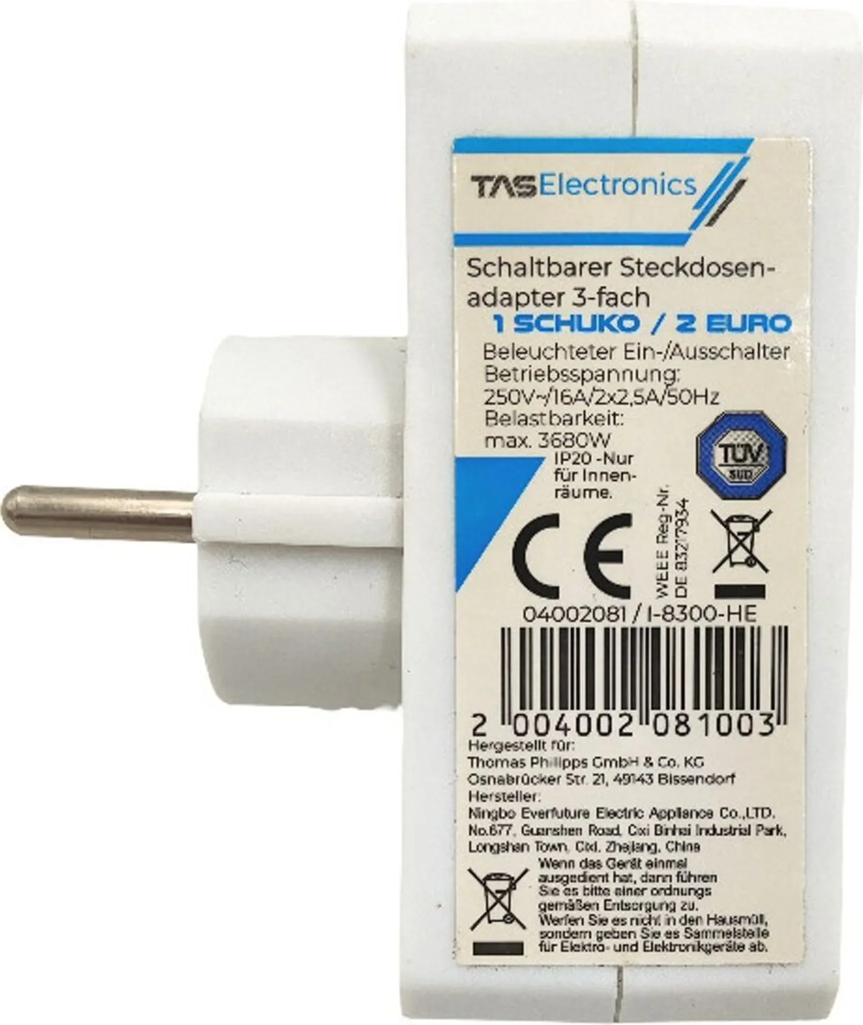 | Im Paket | 1× 3-fach Steckdosenadapter |