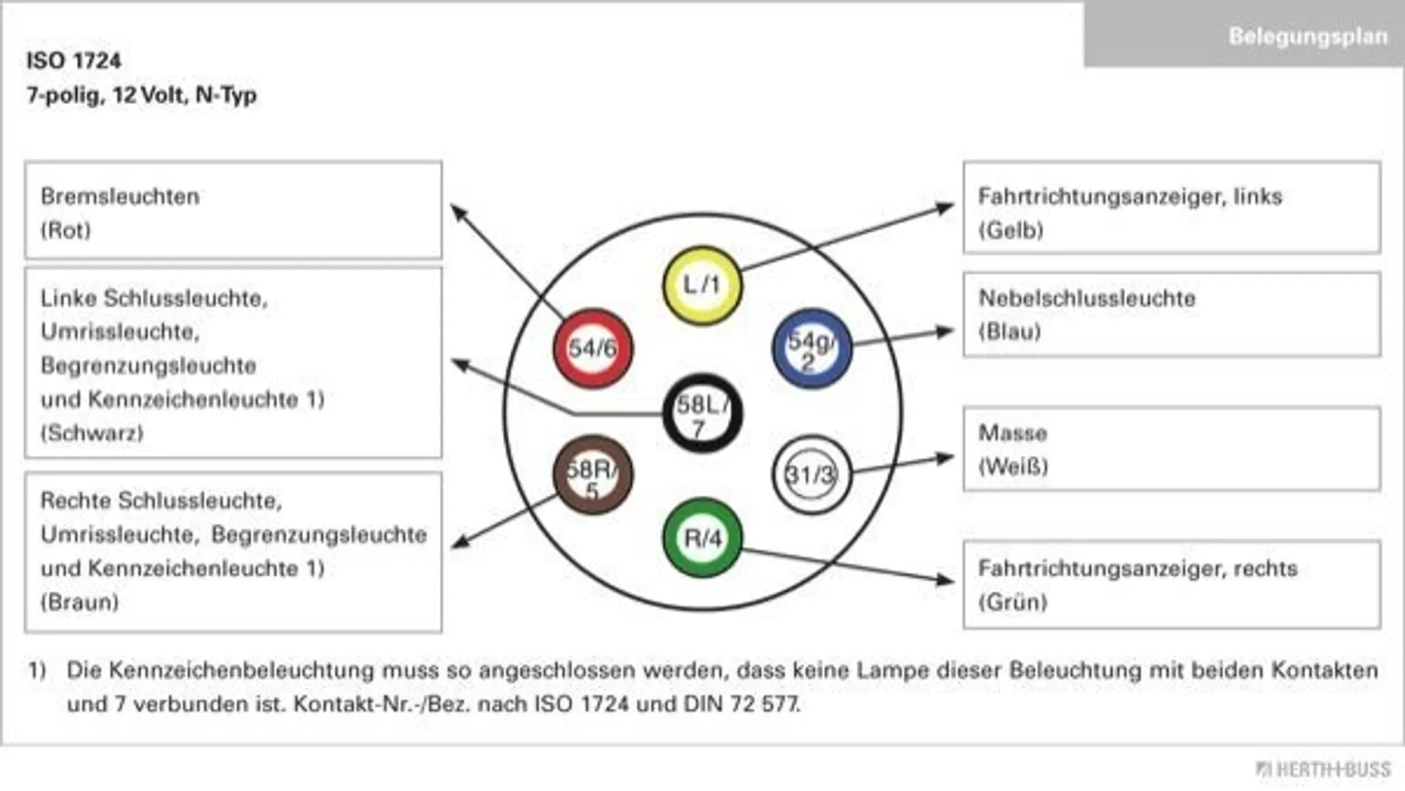 Highlights: ISO 1724 N-Typ • 7-polig • Abschaltkontakt • 6–12 V • Herausnehmbarer Einsatz • Schraubanschluss • Anhänger geeignet.