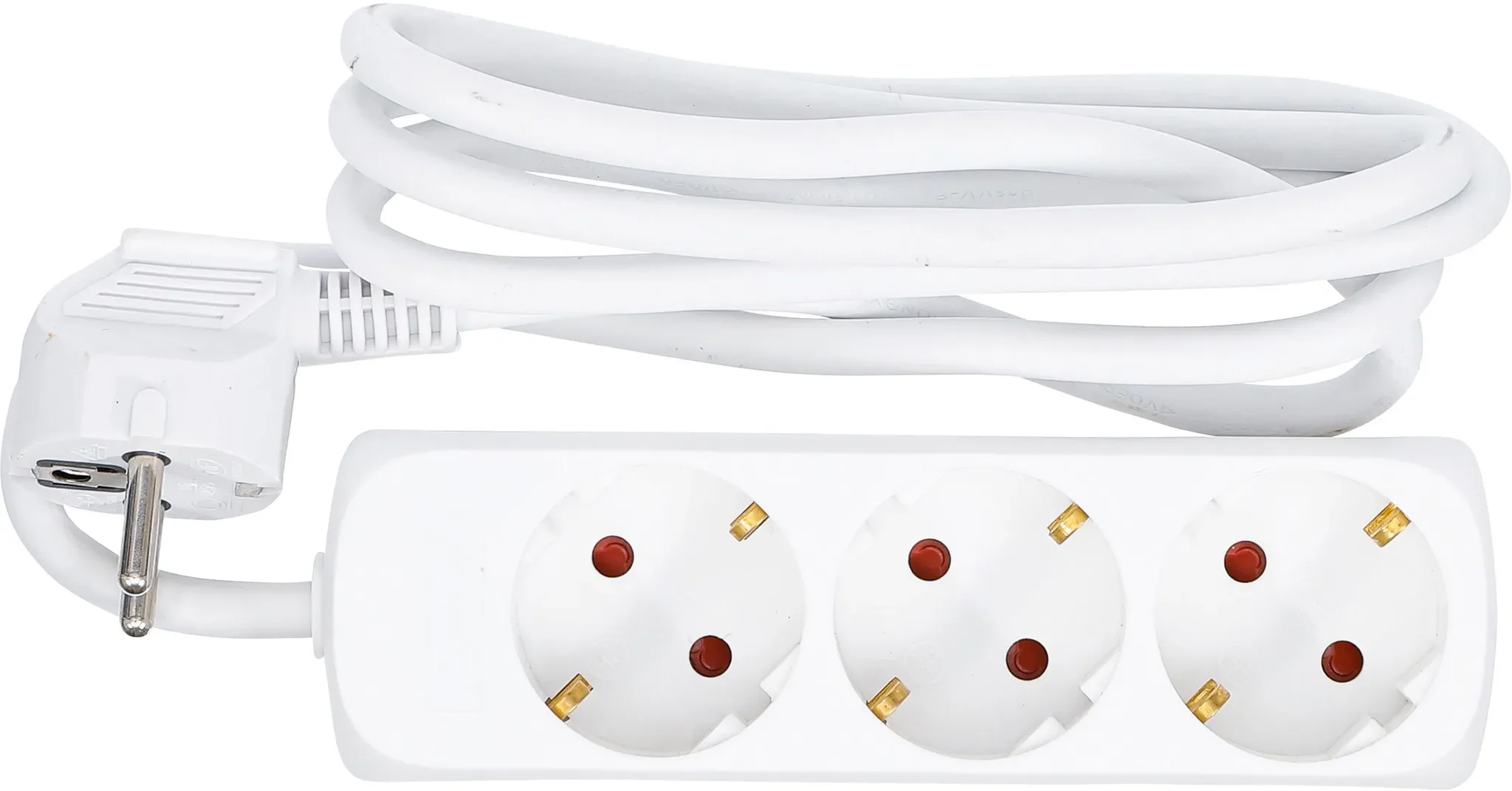 Robuste 3-fach Schutzkontakt-Steckdosenleiste von BGS für den Innenbereich. Die 45° gedrehten Steckplätze ermöglichen die Nutzung von Winkel- und Netzteilen ohne Platzverlust. Mit CEE 7/7 Schutzkontakt-Stecker, 1,4 m Zuleitung, und 3× 1,5 mm² Kabelquerschnitt – ausgelegt für bis zu 3680 W / 16A.