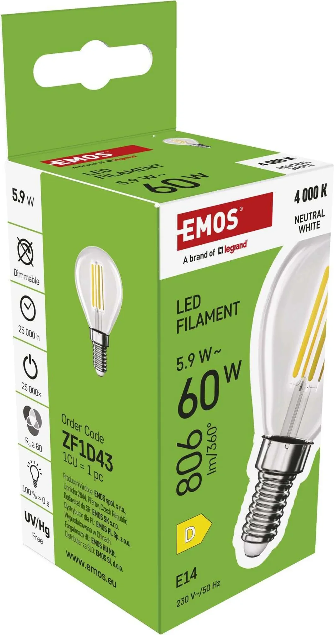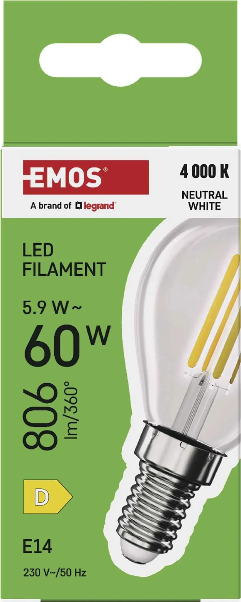 | Im Paket | 1 × EMOS LED Lampe Edison MiniGlobe 5,9 W E14, neutralweiß 4000 K, 806 lm |