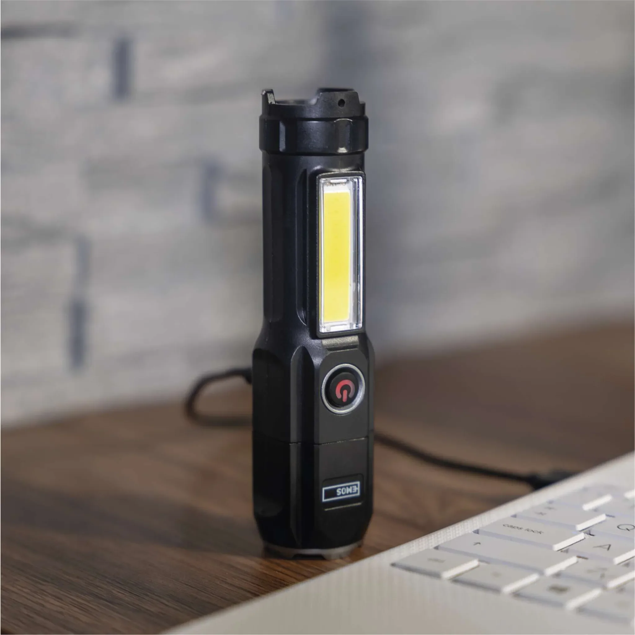 Kraftvolle und kompakte Taschenlampe mit 4 Lichtmodi und Fokusfunktion. Ideal für Camping, Outdoor, Arbeit und Notfälle. Die Leuchte bietet bis zu 150 Lumen Lichtstrom, eine Reichweite von bis zu 150 Metern und ist dank IP44 wasserfest.