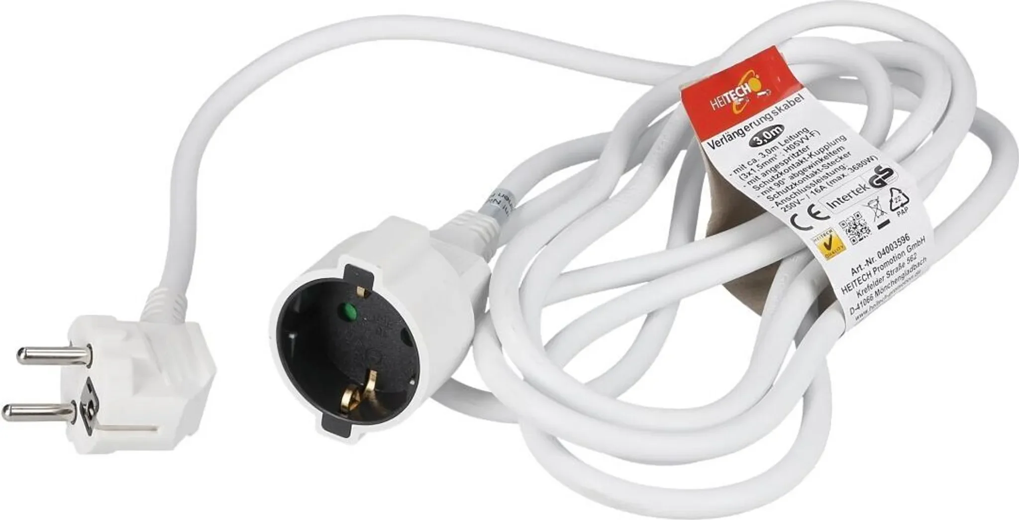 Produktinformationen "HEITECH Verlängerungskabel – 3 m, 3 x 1,5 mm², Schutzkontakt, Weiß"