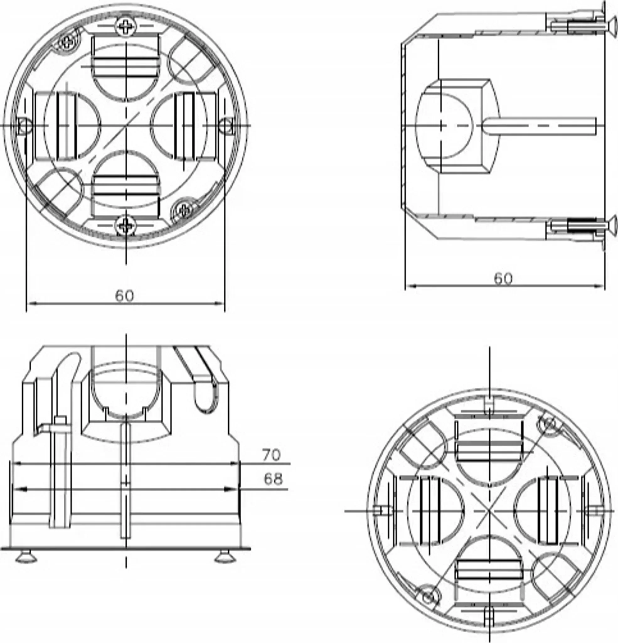 Produktinformationen "Hohlwanddose Ø 60 × 58 mm – Für 68-mm Fräsloch – Rund"