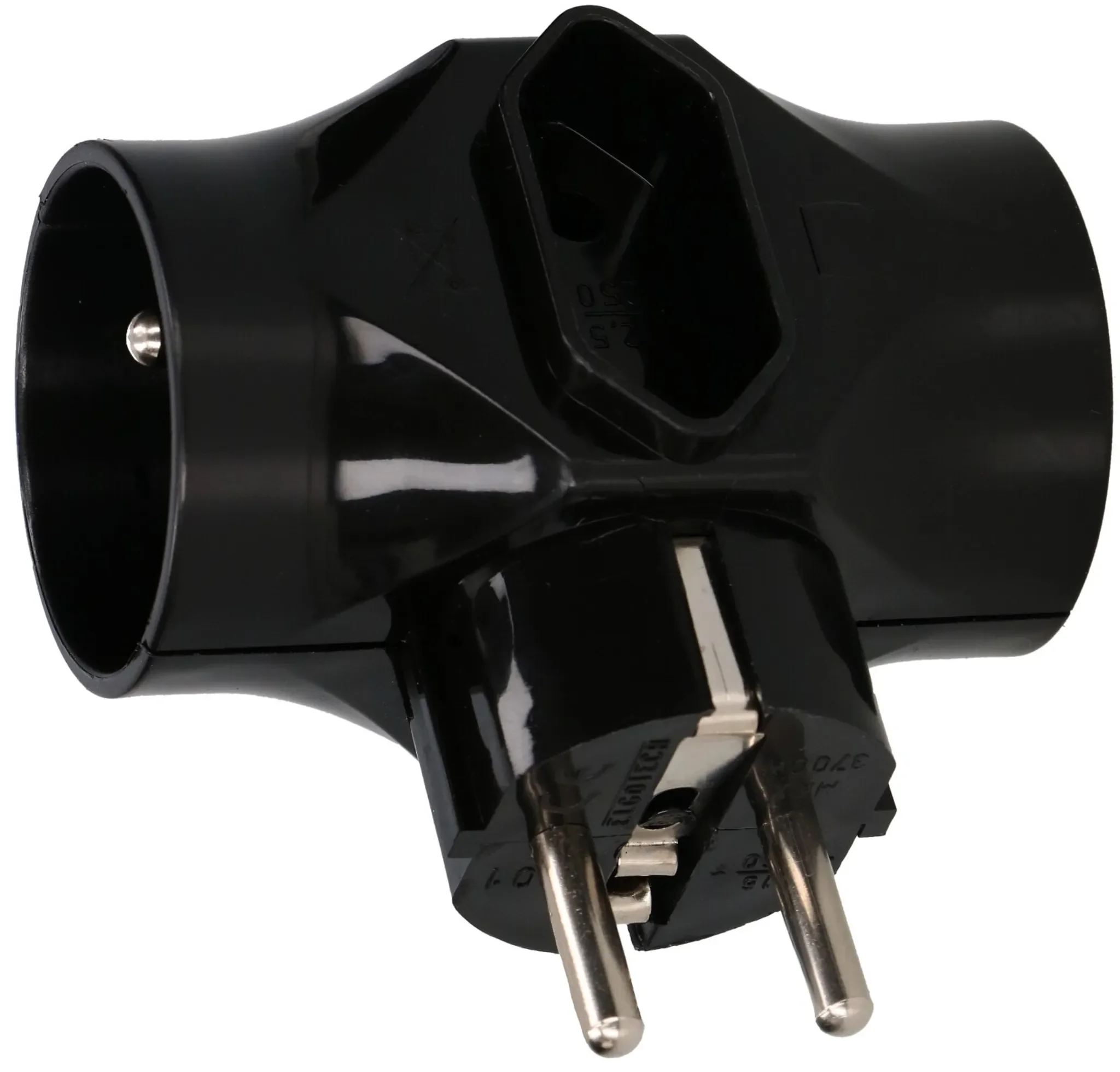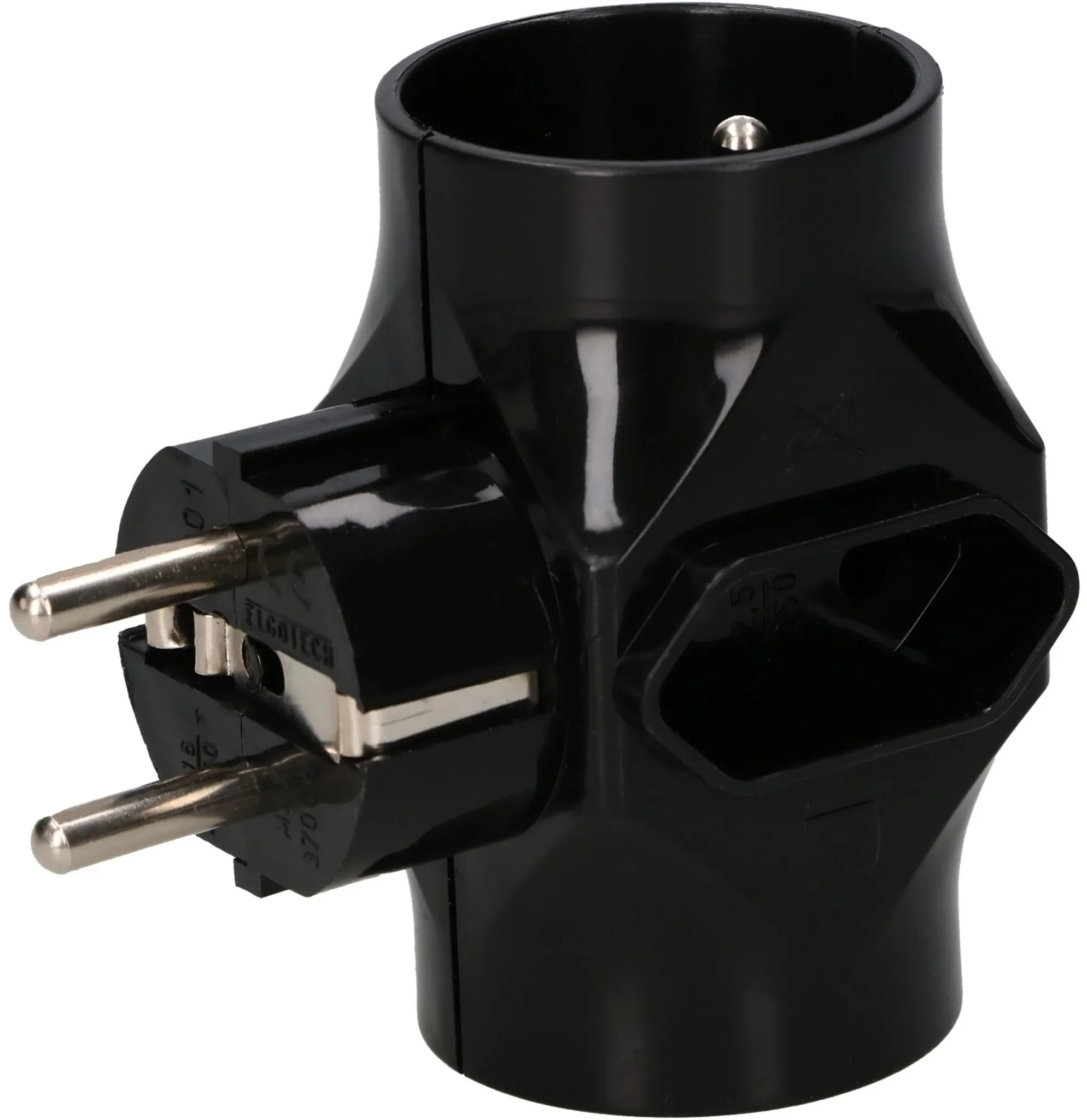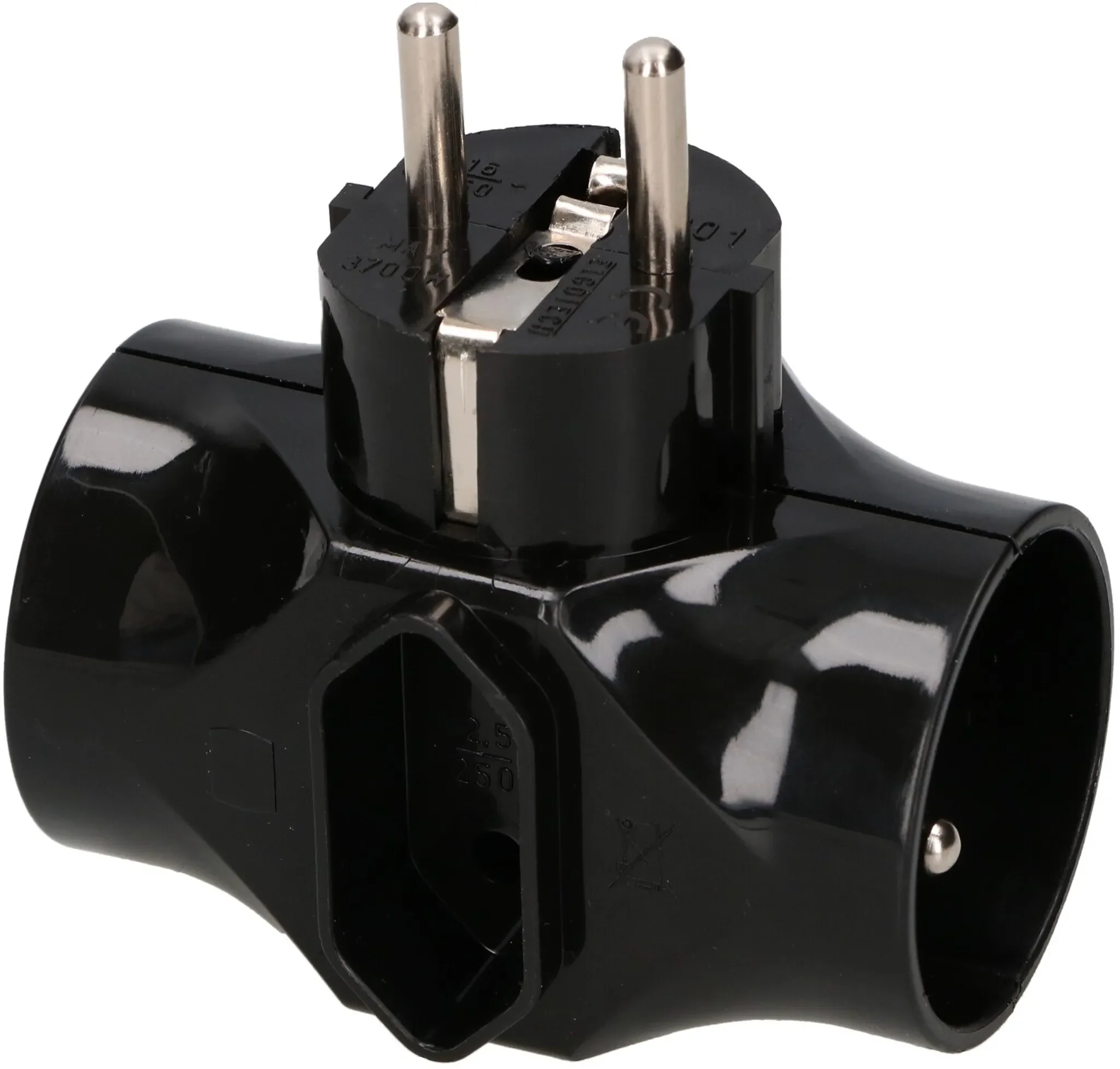 Produktinformationen "KOTARBAU 3-fach Steckdosen-Adapter – 2× Rund mit Erdung + 1× Flach ohne Erdung – Schwarz"