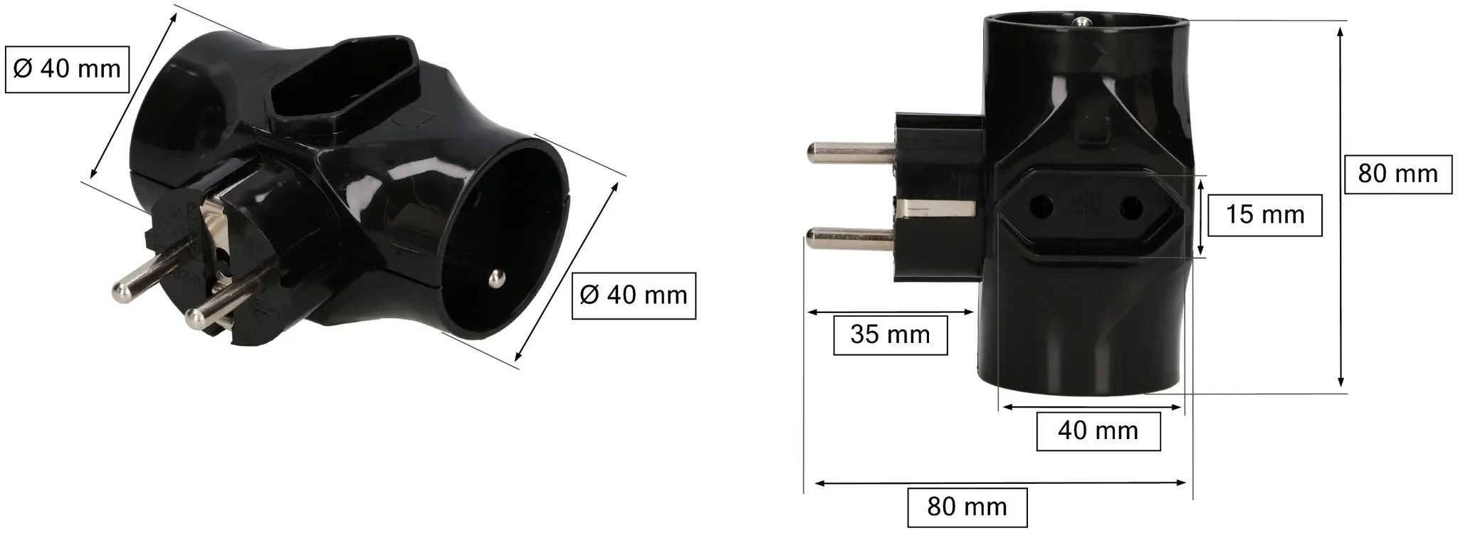| Im Paket | 1× 3-fach Steckdosen-Adapter Schwarz |