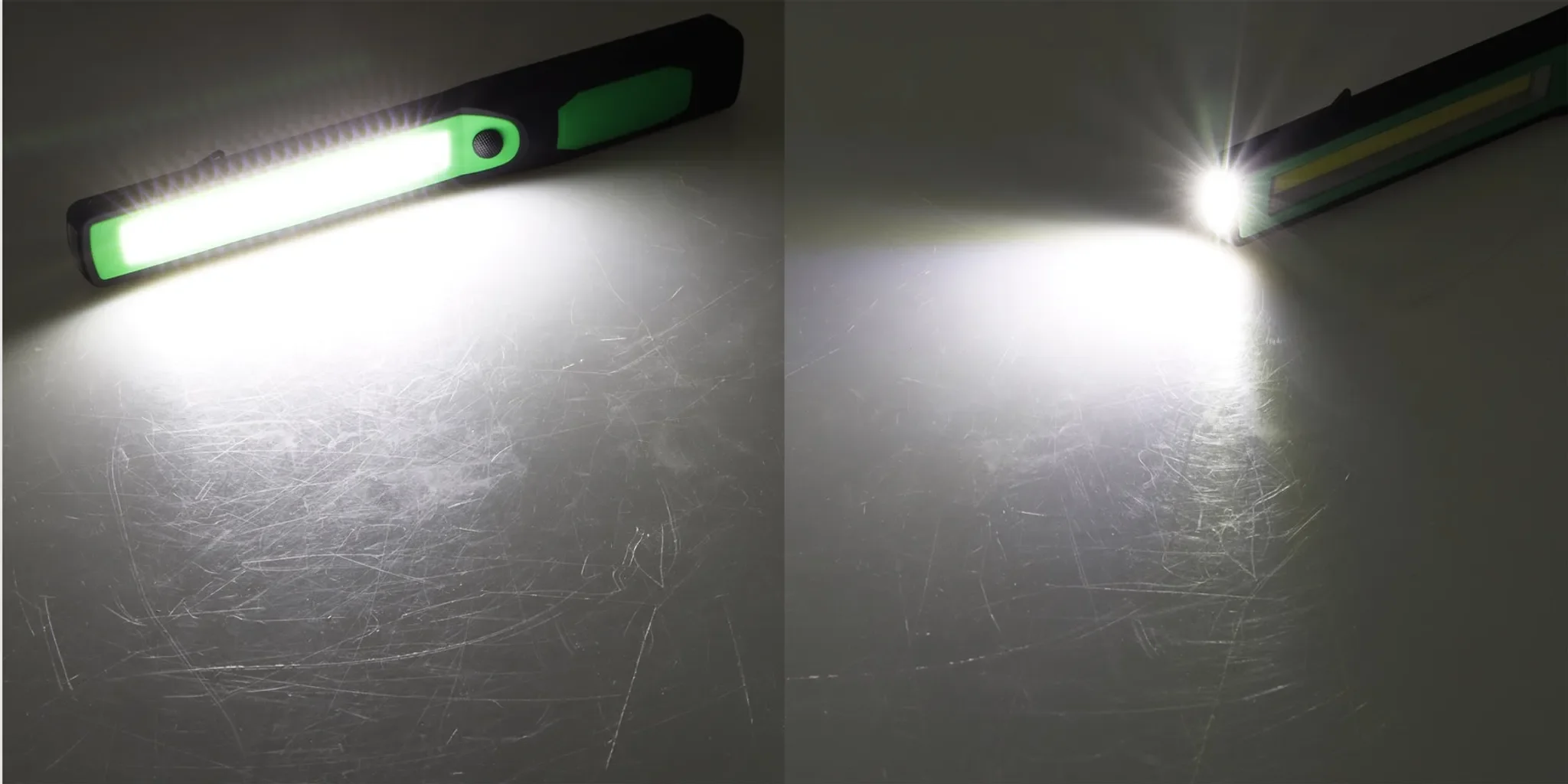 Diese professionelle LED COB Arbeitsleuchte bietet leistungsstarke Beleuchtung für Werkstatt, Garage, Camping oder Outdoor-Aktivitäten. Dank 3 kraftvoller Magnethalter, Haken und Softgummi-Beschichtung lässt sie sich flexibel anbringen und sicher greifen.