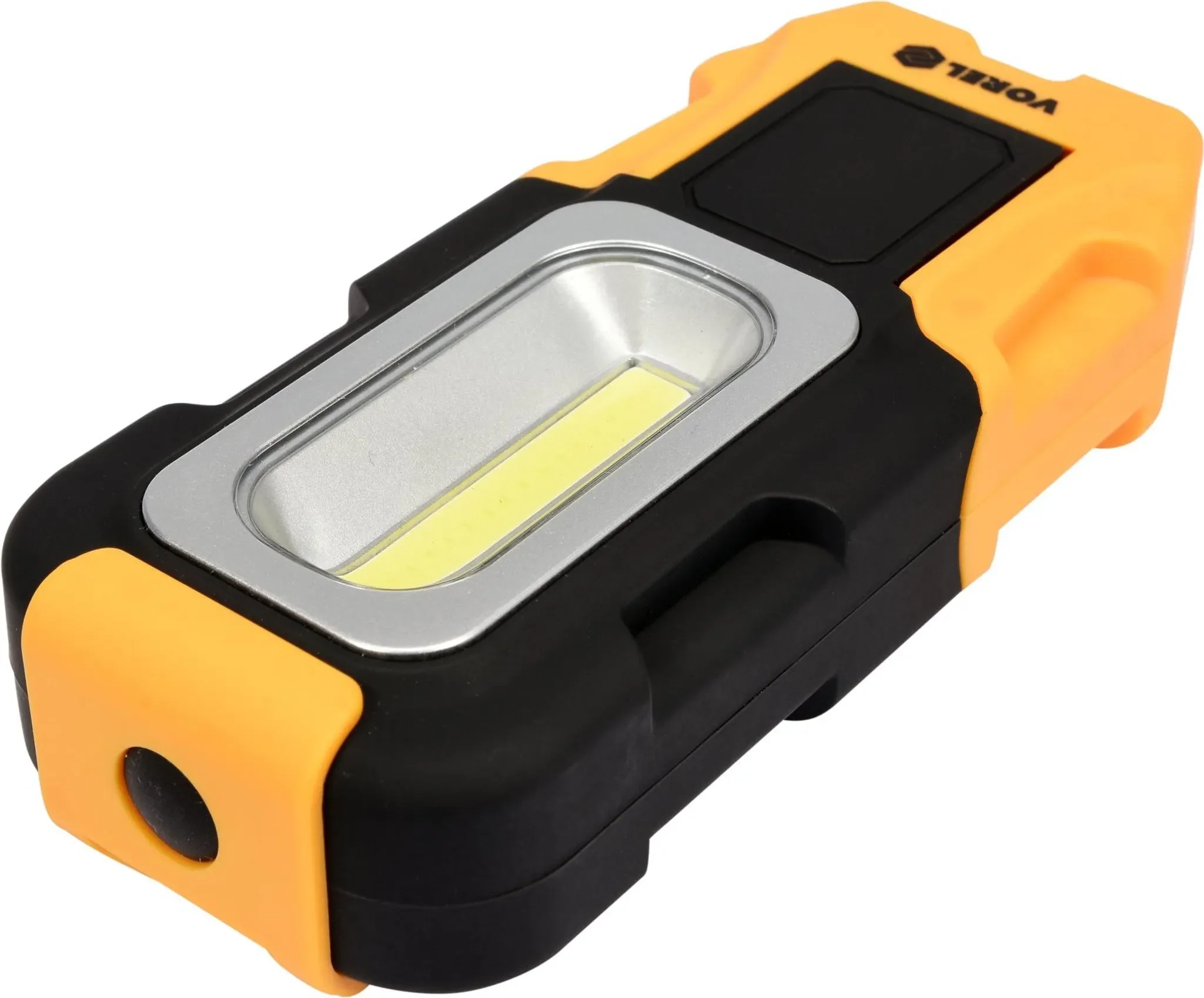 Die 3W COB-LED Taschenlampe bietet helles, diffuses Licht und maximale Flexibilität durch ihr drehbares Gehäuse. Ideal für Werkstatt, Garage, kleine Reparaturen oder unterwegs. Mit Haken und Magnetfuß lässt sie sich einfach überall befestigen.